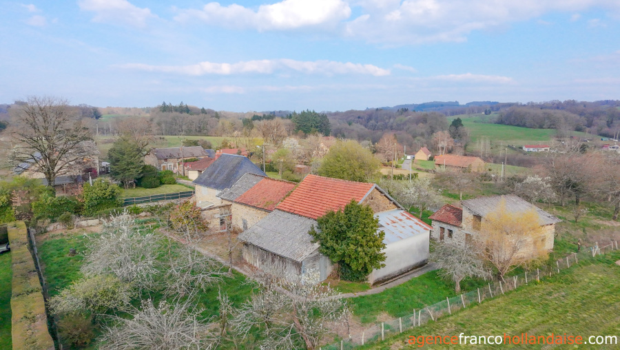 To the right of the house, a stone lean-to houses two rooms: the boiler room with an oil-fired boiler about twenty years old, no longer in use, but which could, after maintenance, be made to work again. A room for the oil tank is located just behind this room, with an access door to the north. Adjacent to the house is a Limousin-style animal barn with two stables, which could either be converted (subject to obtaining planning permission) or used as a storage area. Next to this barn is a second, open hay barn, partially built over a cellar, ideal as a garage and/or workshop. And if you still need more storage space… there is an additional garage with a concrete block structure and metal roof, extending from the second barn. Behind this, there is a semi-open, timber-framed shed, and finally, a first set of stone pigsties adjoining the first barn, and a second, separate set of stone pigsties with a loft. Adjacent to these second pigsties is a working bread oven with a bakehouse.
