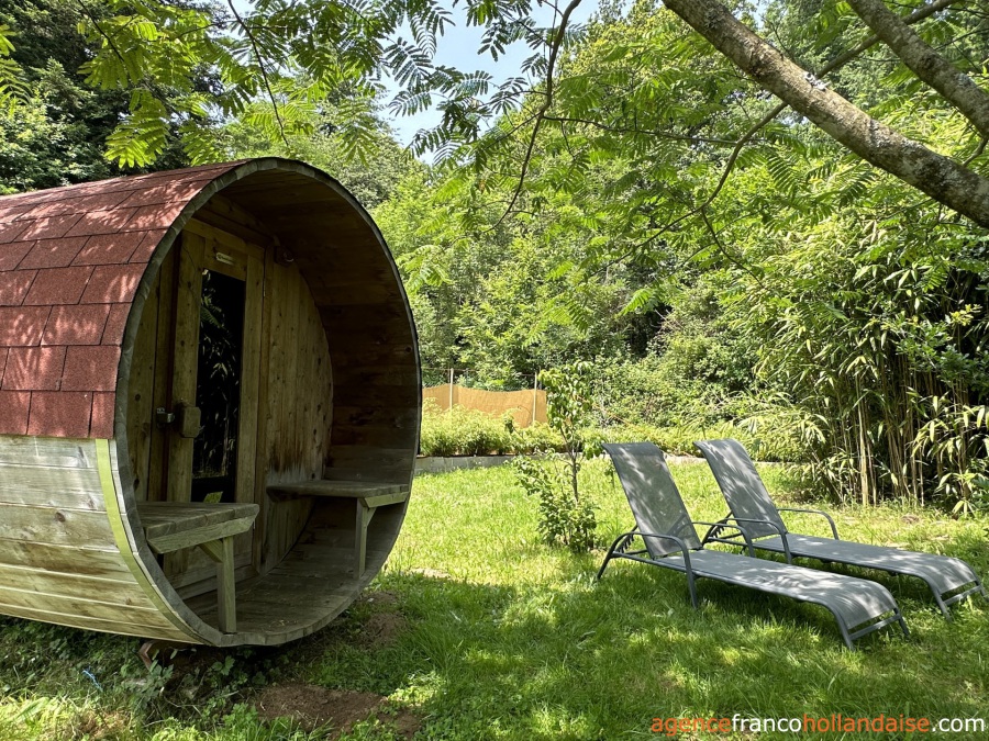 The three-hectare grounds, featuring a small pond, surround the property. There is a large barn (approx. 300 m²), a heated saltwater swimming pool and a sauna.