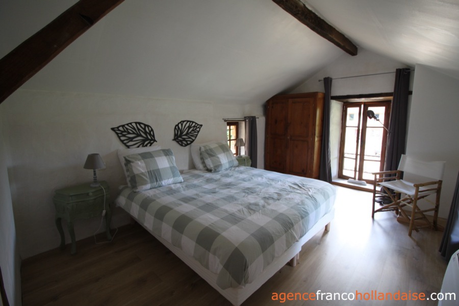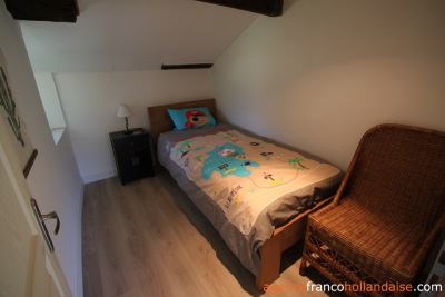 The second gîte, measuring 55 m², comprises a living room, kitchen and bathroom on the ground floor, and two bedrooms on the first floor.