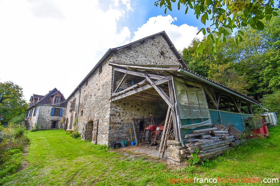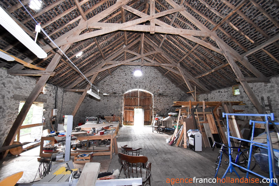 Located between the two houses, a large Auvergne-style stone barn measuring 66’ x 36’ with a slate roof. The main entrance is flat via the south-west gable at ground floor level on a large space opened to the apex. Everything can be stored, animals, feeds, vehicles and there is a large hay barn door on the garden side. On the garden level, several stables with high ceilings, perfect for all types of animals or equipment. A 36’ x 17’ lean-to against the north-east gable of the barn allows to store your tractor(s), if you have any! That's just to say there's room...