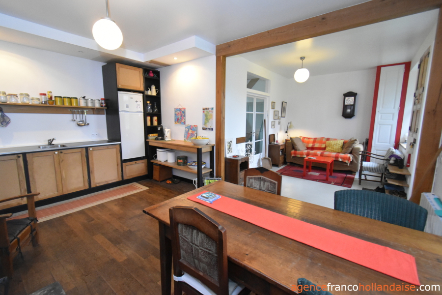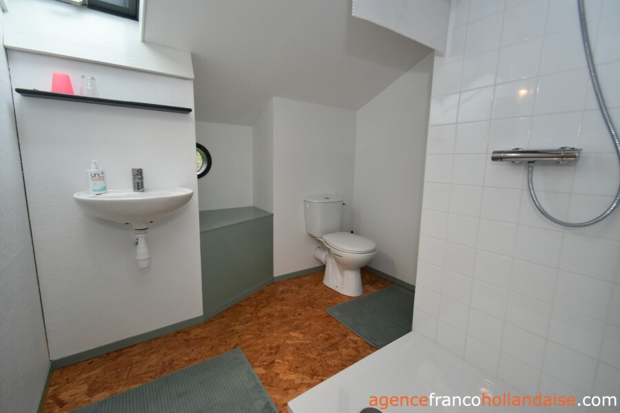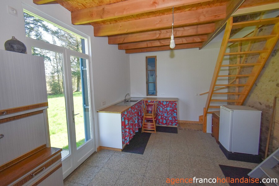 A guest house has been built at the rear of the barn. It is accessible via the barn and its covered terrace. The ground floor consists of a single place of approximately 190 ft² with a kitchenette. Upstairs there are two bedrooms and a bathroom (shower, toilet and washbasin). Ideal, therefore, for accommodating guests or potentially letting out.