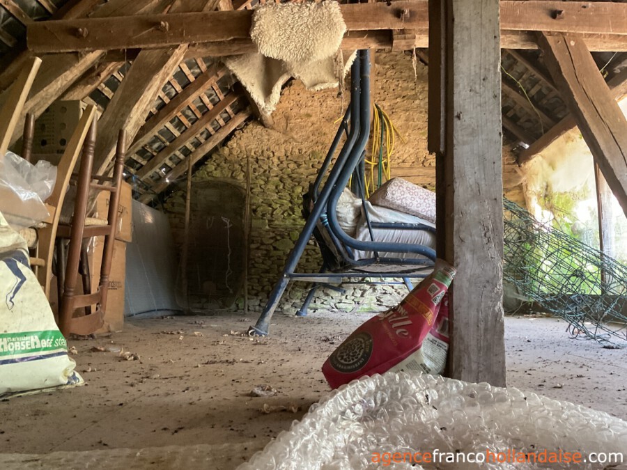 The cottage has a spacious kitchen and living room on the ground floor. Elements such as wooden beams, wooden floors, stone walls and fireplaces create an authentic atmosphere. Upstairs are two bedrooms and a bathroom. The house is perfectly habitable but does not yet meet current modern living standards.