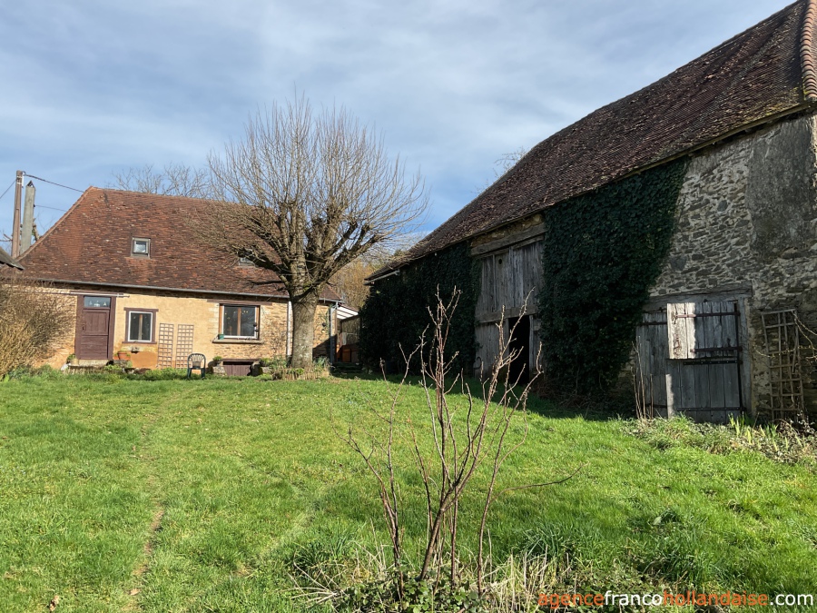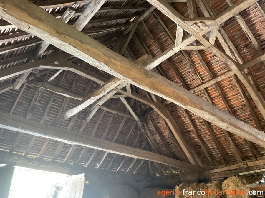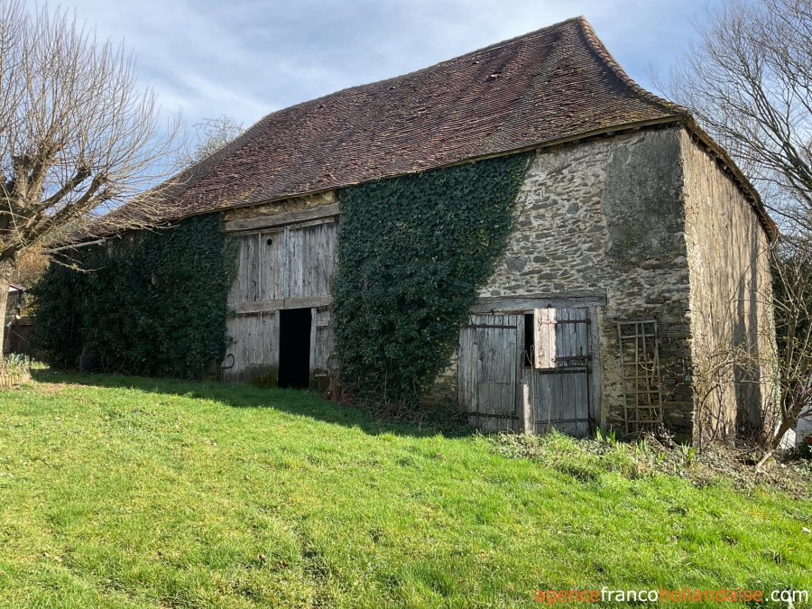 This charming, authentic cottage is situated in an exceptionally beautiful and tranquil location. The plot feature three barns, a bread oven, and a cottage. Surrounded by greenery, you feel like you've stepped back in time 50 years. Wandering through the barns, you come across an old tractor, hay bales and even two homemade aeroplanes. The plot comprises 16,8 acres, consisting of meadows and trees. It has its own water source. A stream borders the property, adding to its special and natural character.